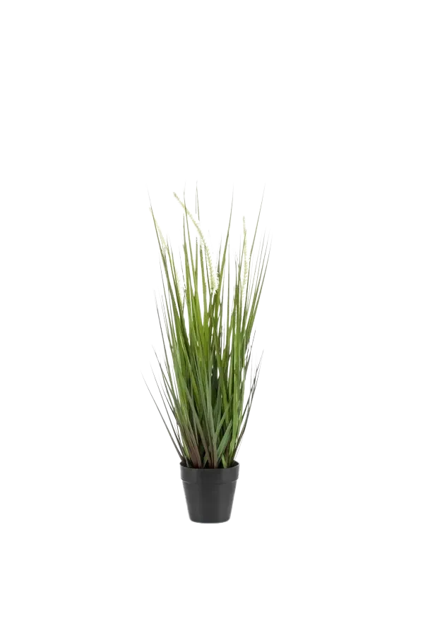 Info: im Schwarzen Kunststofftopf, mit weißen Grasblüten